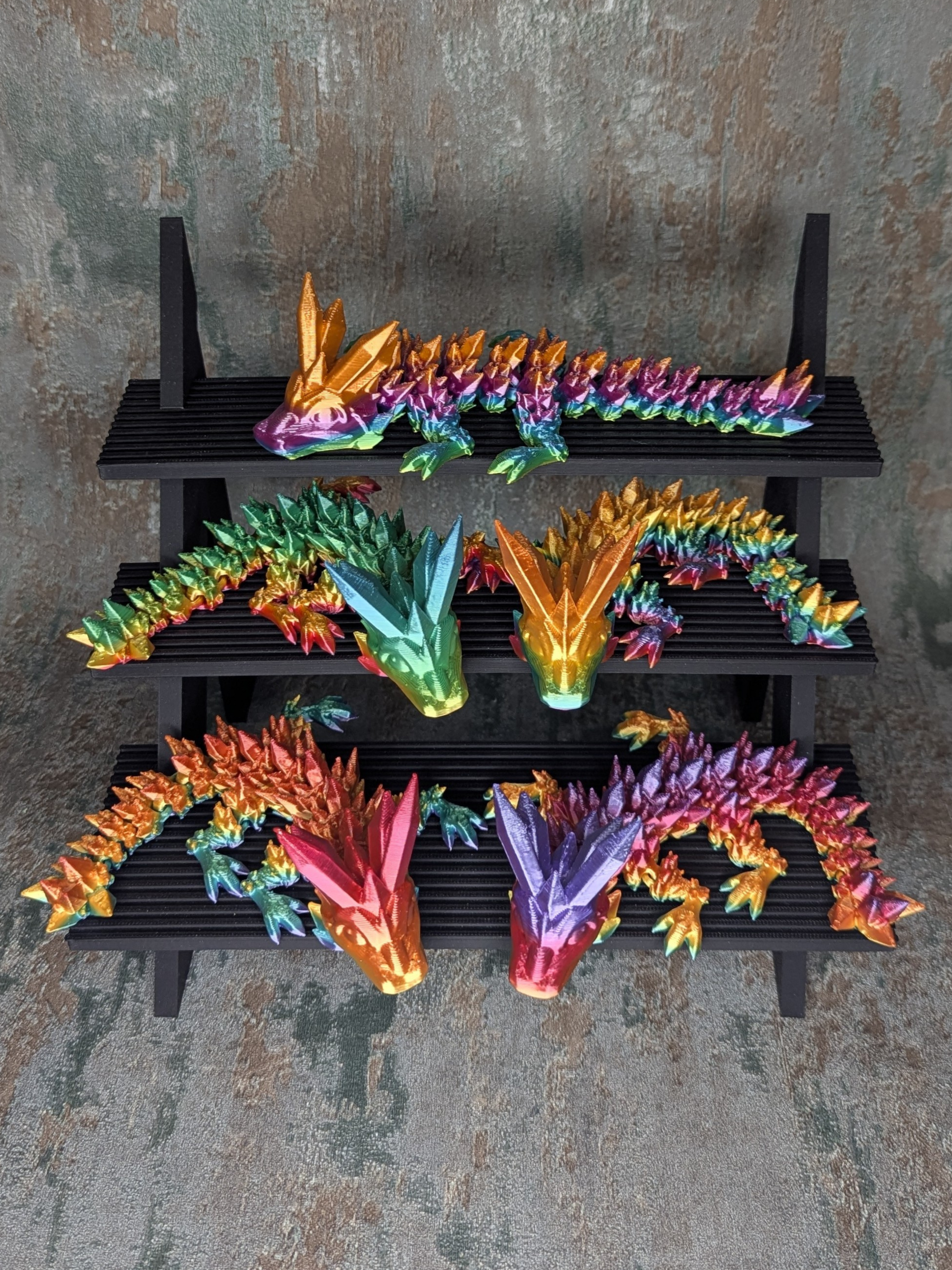 Bitte beachte, dass der Farbverlauf des Regenbogenfilaments immer gleichbleibt, die Start- und Endfarbe jedoch variieren kann. Bei kleineren Figuren kann es zudem vorkommen, dass nicht alle Farben des Regenbogens enthalten sind, sondern nur ein Teil davon. Jede Figur ist dadurch ein echtes Unikat!