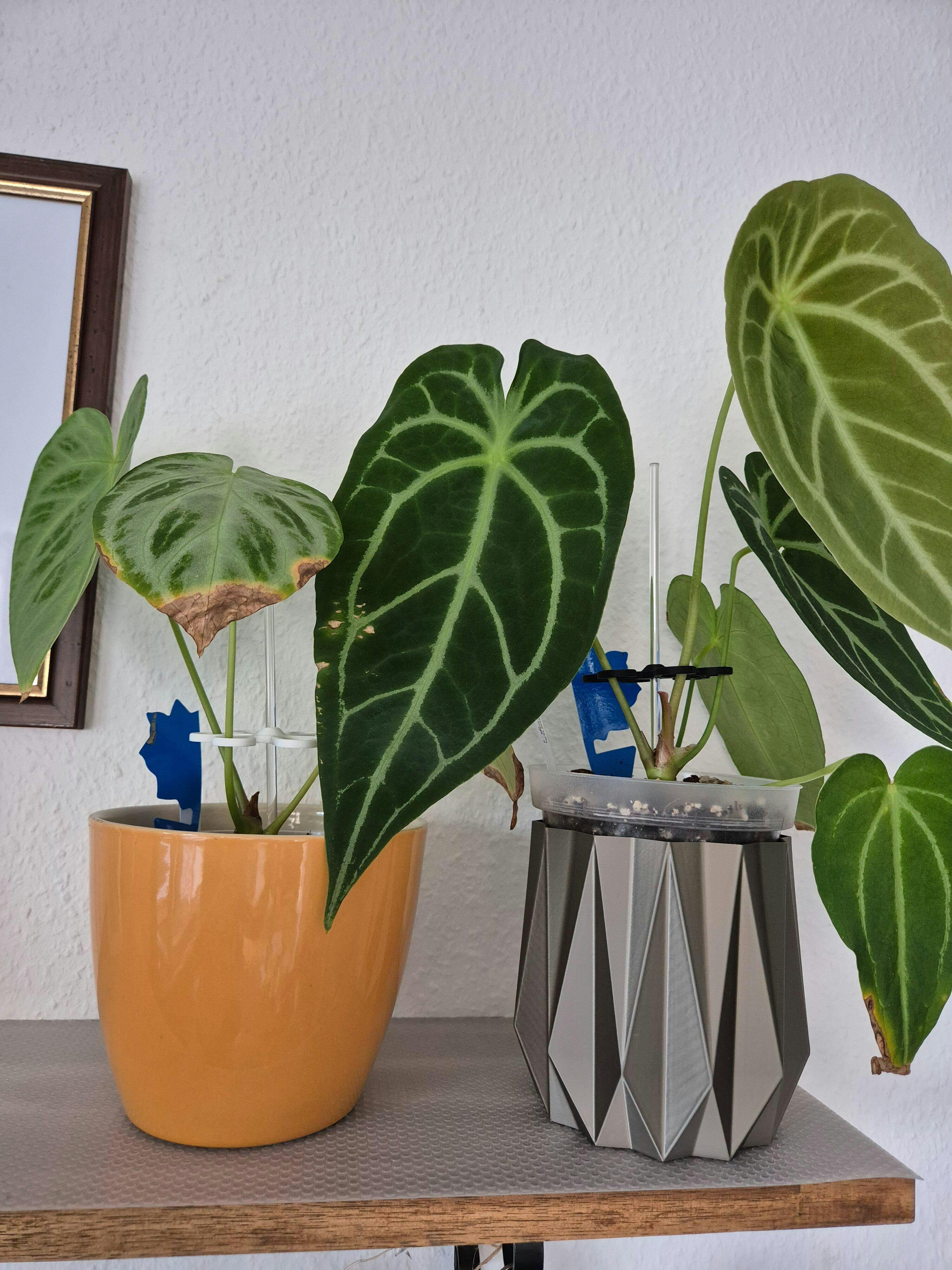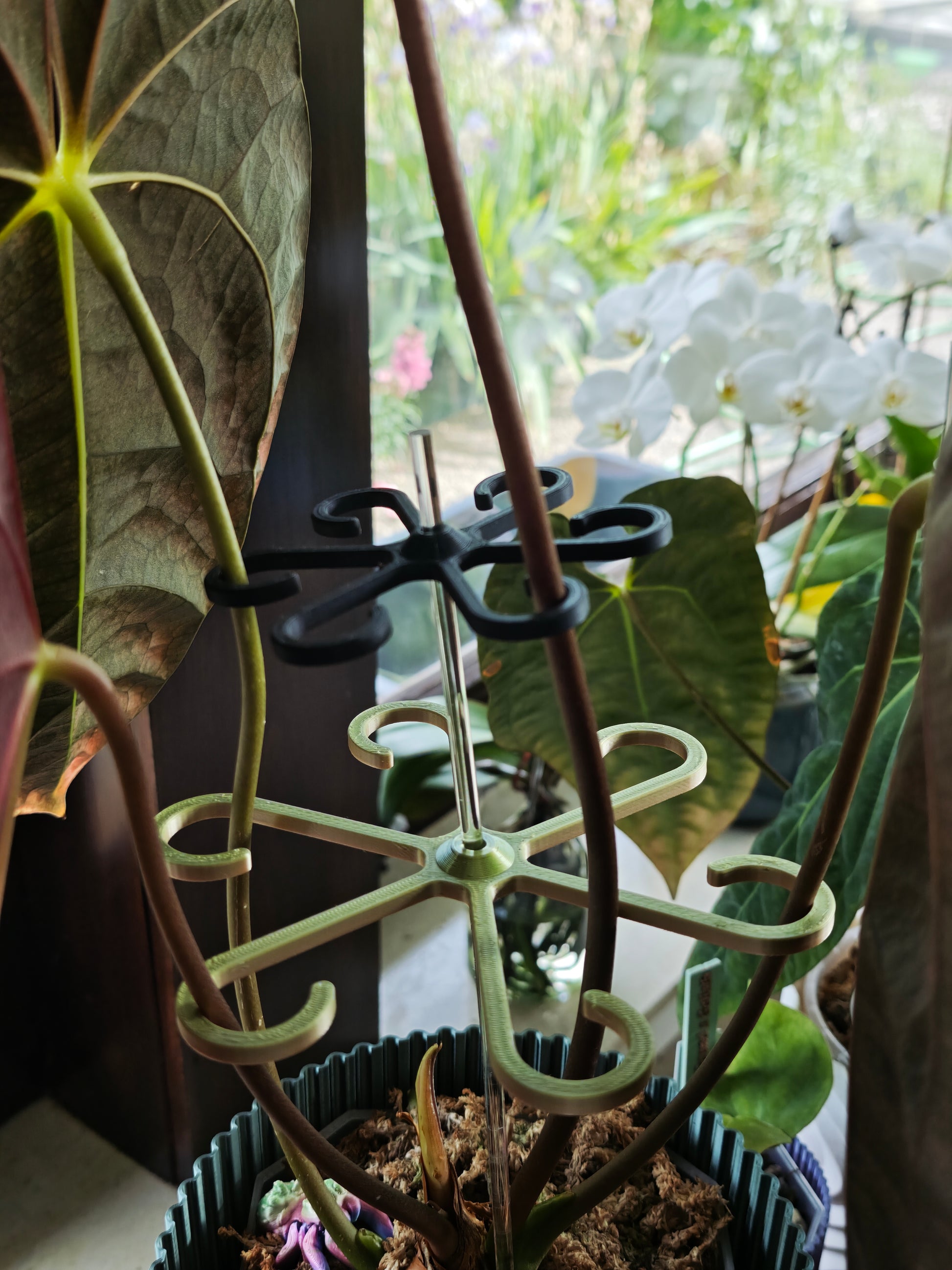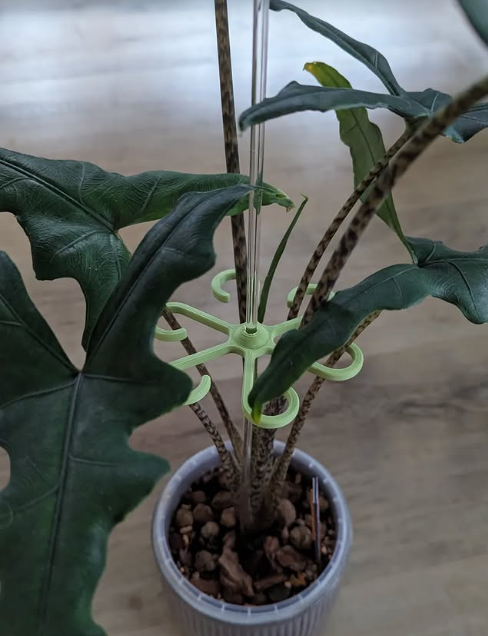 Pflanzenkraken sind ein innovatives, 3D-gedrucktes Zubehörteil, das speziell entwickelt wurde, um die Stiele von Zimmerpflanzen wie Alocasien, Anthurien, Monstera oder Philodendron sicher zusammenzuhalten. Mit seinem außergewöhnlichen Design erinnert er an die Tentakel eines Oktopus, daher der charmante Name.